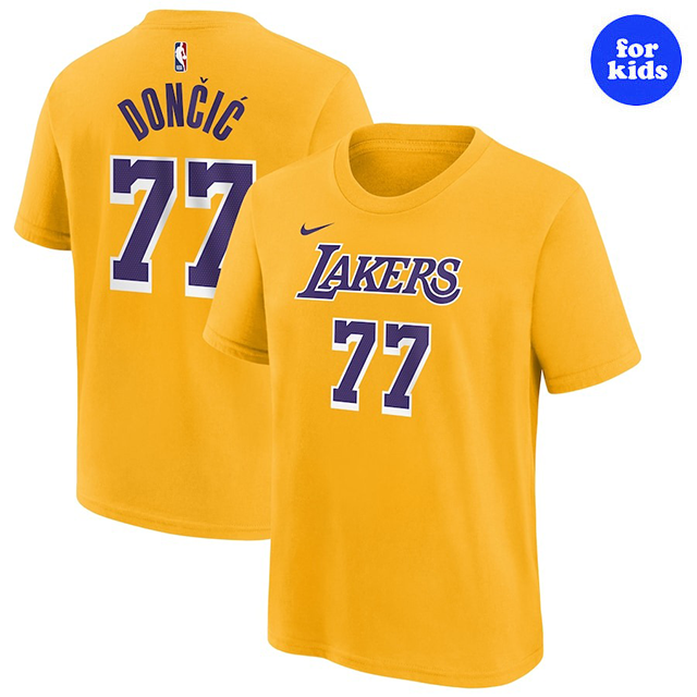 子供用 海外取寄 ナイキ Tシャツ ルカ ドンチッチモデル Tシャツ YOUTH 2024-25 ICON EDITION NAME&NUMBER T-SHIRT GOLD NIKE ロサンゼルス レイカーズ LOS ANGELES LAKERS LUKA DONCIC