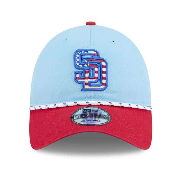 海外取寄 ニューエラ キャップ 9TWENTY サンディエゴ パドレス 2025 MLB JULY 4TH STARS N STRIPES ADJUSTABLE CAP LIGHT BLUE