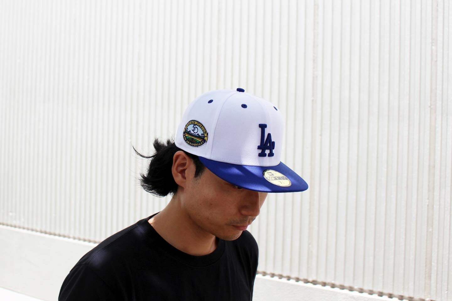 ロサンゼルス ドジャースタジアムの50周年記念のサイドパッチが刺繍されたアイテムです。