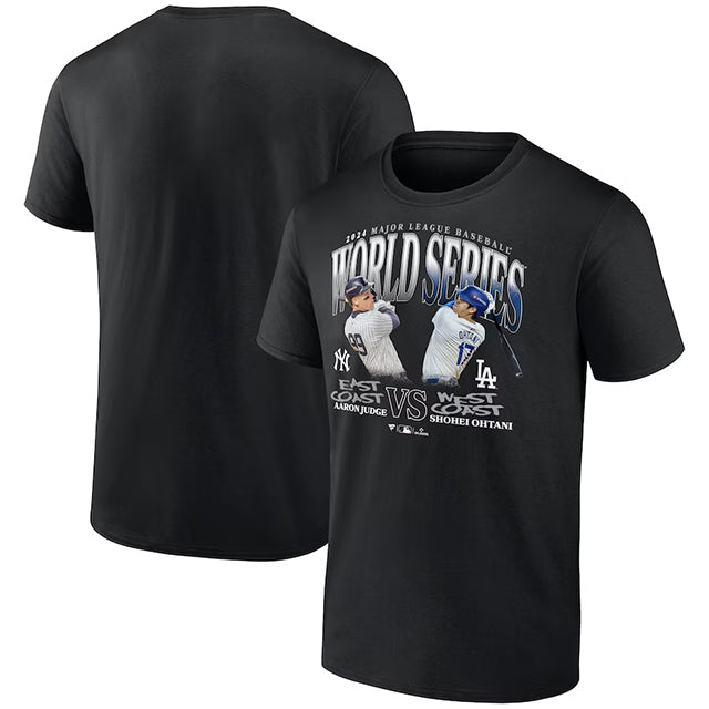 2024 ワールドシリーズ 大谷翔平 アーロン ジャッジモデル 海外取寄 Tシャツ ニューヨーク ヤンキース vs ロサンゼルス ドジャース MLB 2024 WORLD SERIES MUTCHUP T-SHIRT BLACK FANATICS BRAND LOS ANGELES DODGERS
